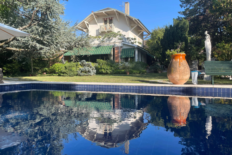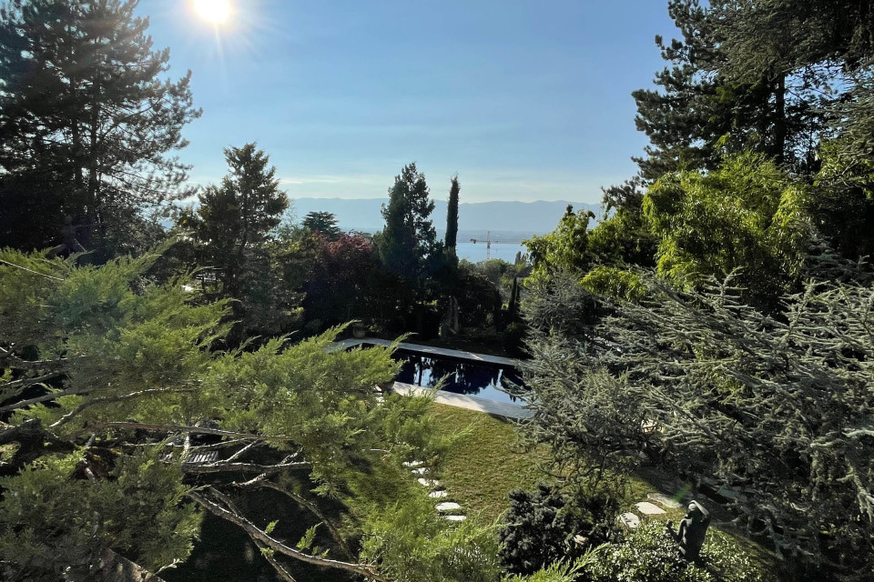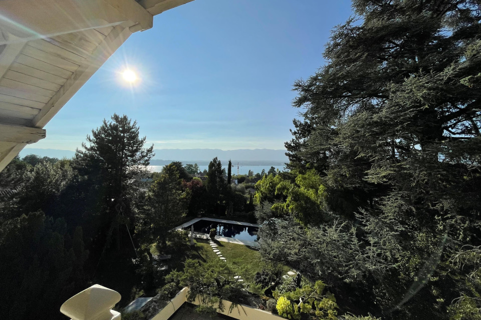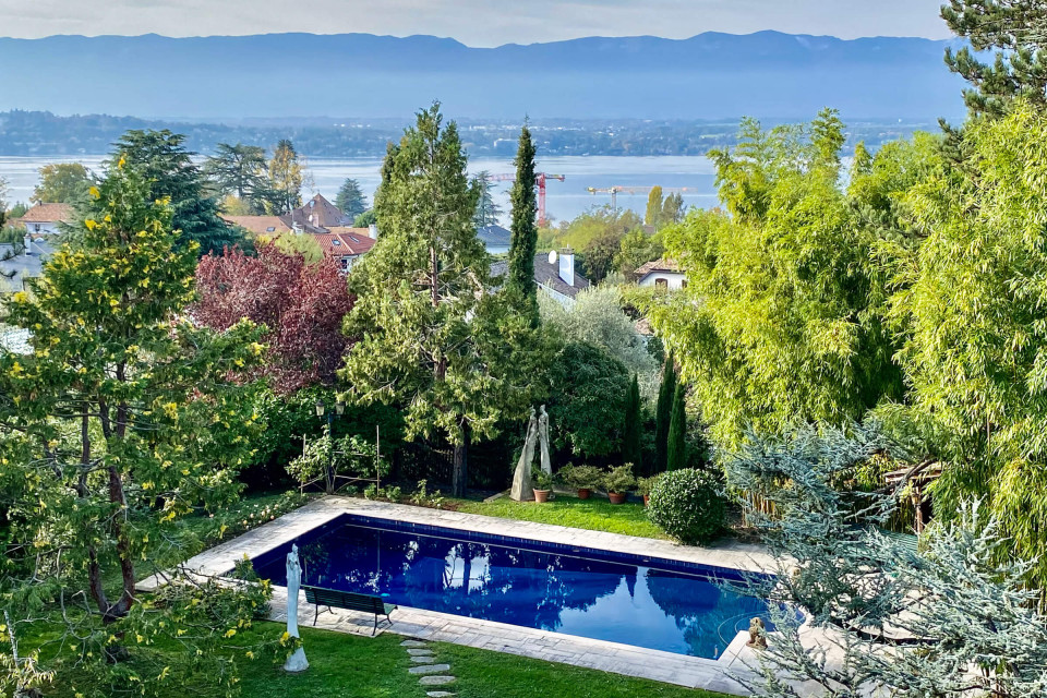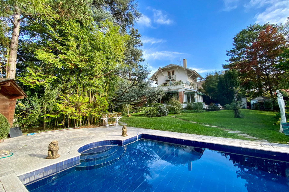 Magnifique propriété d’époque datant des années 1900 d’une surface de 2100 m2 de jardin superbement arboré, dont un majestueux cèdre du Liban, agrémenté d’une piscine et d’une parcelle dominant le lac et le Jura.