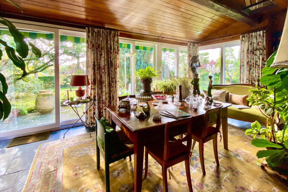 La demeure est composée d’un hall d’entrée avec WC visiteur, grand salon qui mène sà la petite salle à manger dans la véranda, jardin d’hivers, grande salle à manger et cuisine séparée avec sortie extérieure indépendante. Le 1er étage possède une grande chambre, une suite avec dressing salle de bain prolongée par une terrasse de 100 m² avec superbe vue sur le lac.