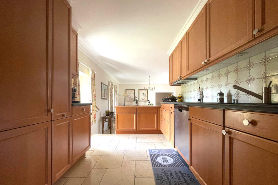 The outbuilding includes a barn which has been partially converted on the ground floor. It is composed of a studio, a wine cellar and 2 storage rooms. The upper floor, accessible from the outside could accommodate several cars or have other functions. 2 covered parking spaces are available. Located in protected area 4B, the barn could be converted into residential apartments (subject to approval).