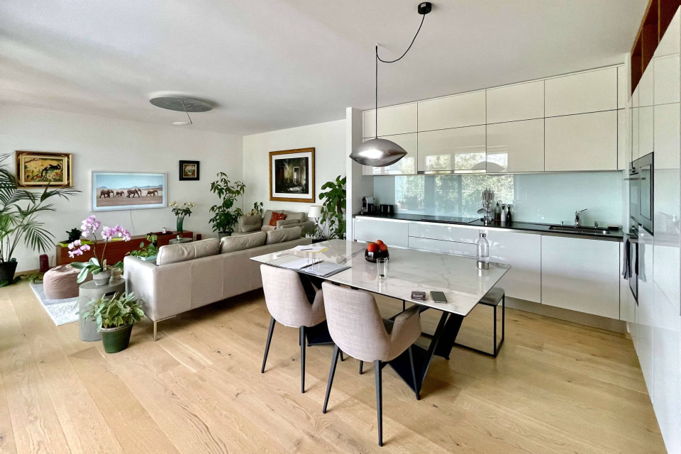Magnificent recent apartment of more than 110 m2, in excellent condition, located in the heart of the city of Geneva, Pâquis area. Located on a high floor of a very contemporary building with all the latest energy technologies, 5 minute’s walk from Cornavin train station with all the amenities, this beautiful apartment offers high ceilings, plenty of light and very beautiful features
