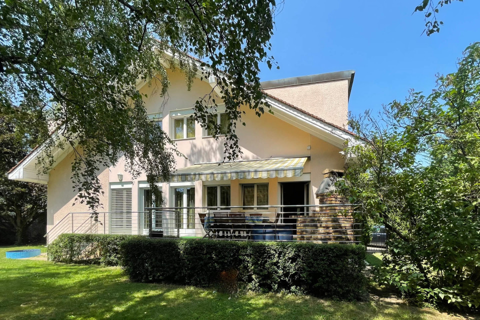 Beautiful villa originally dating from 1916 then enlarged in 1980 and completely renovated in 2001. With a surface area of more than 400m2 in total, located on a pleasant flat and well-wooded plot of almost 1100m2. Located in a region close to all amenities and means of transport for direct access to the city, in the rapidly evolving district of Chêne-Bourg where it is possible to have artisanal and industrial activities.