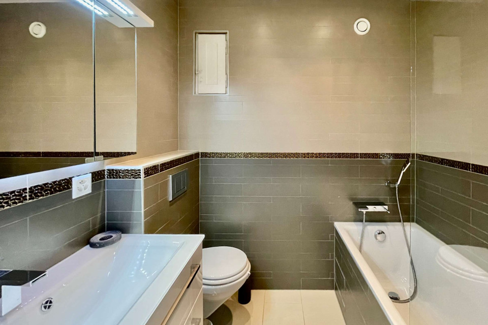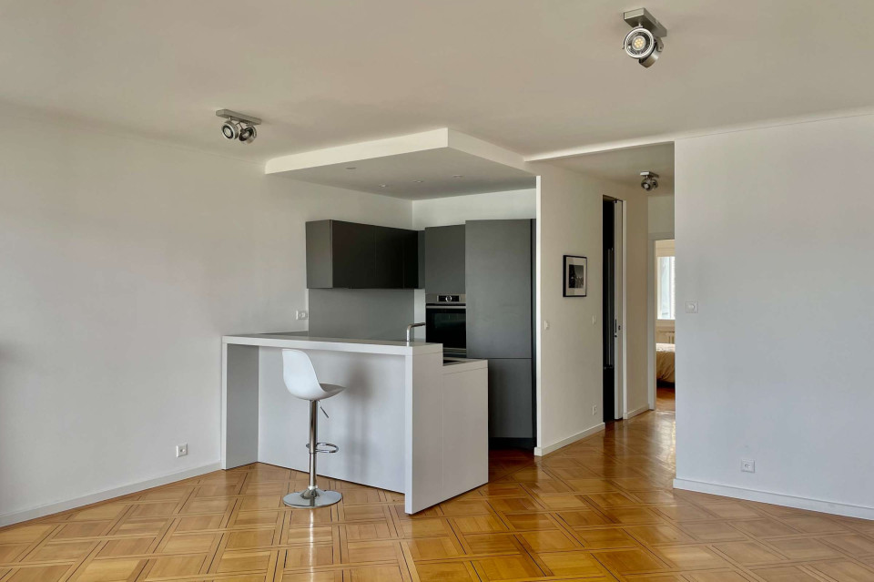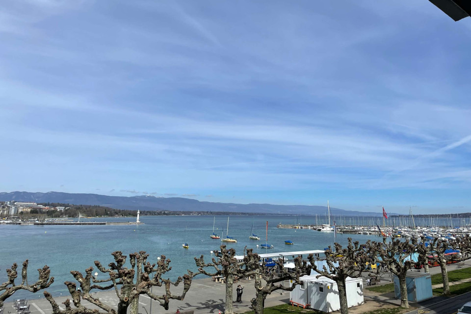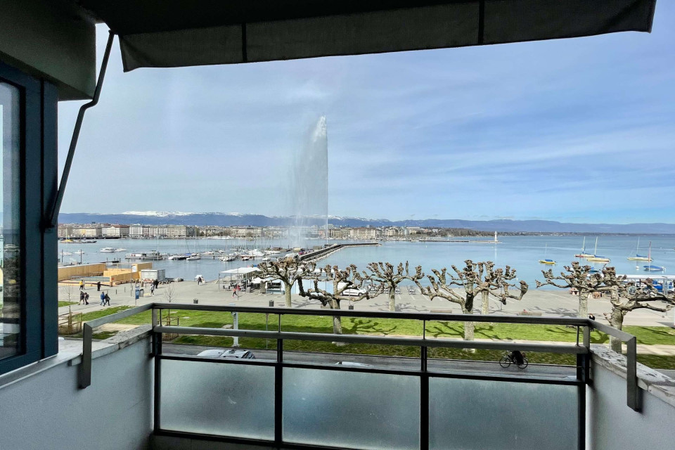 Cuisine ouverte sur le salon, salle à manger avec vue époustouflante sur la rade et le jet d’eau, le tout prolongé par un agréable balcon. La partie nuit est composée de deux chambres dont une avec balcon et une salle de bain. Disponible de suite.
